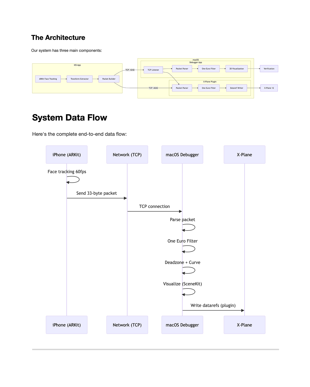 Es gibt auch ein alternatives "OpenTrack" Protokoll—48 Bytes, verwendet von anderen Flight Sim Tools—das unser System ebenfalls für Kompatibilität unterstützt.